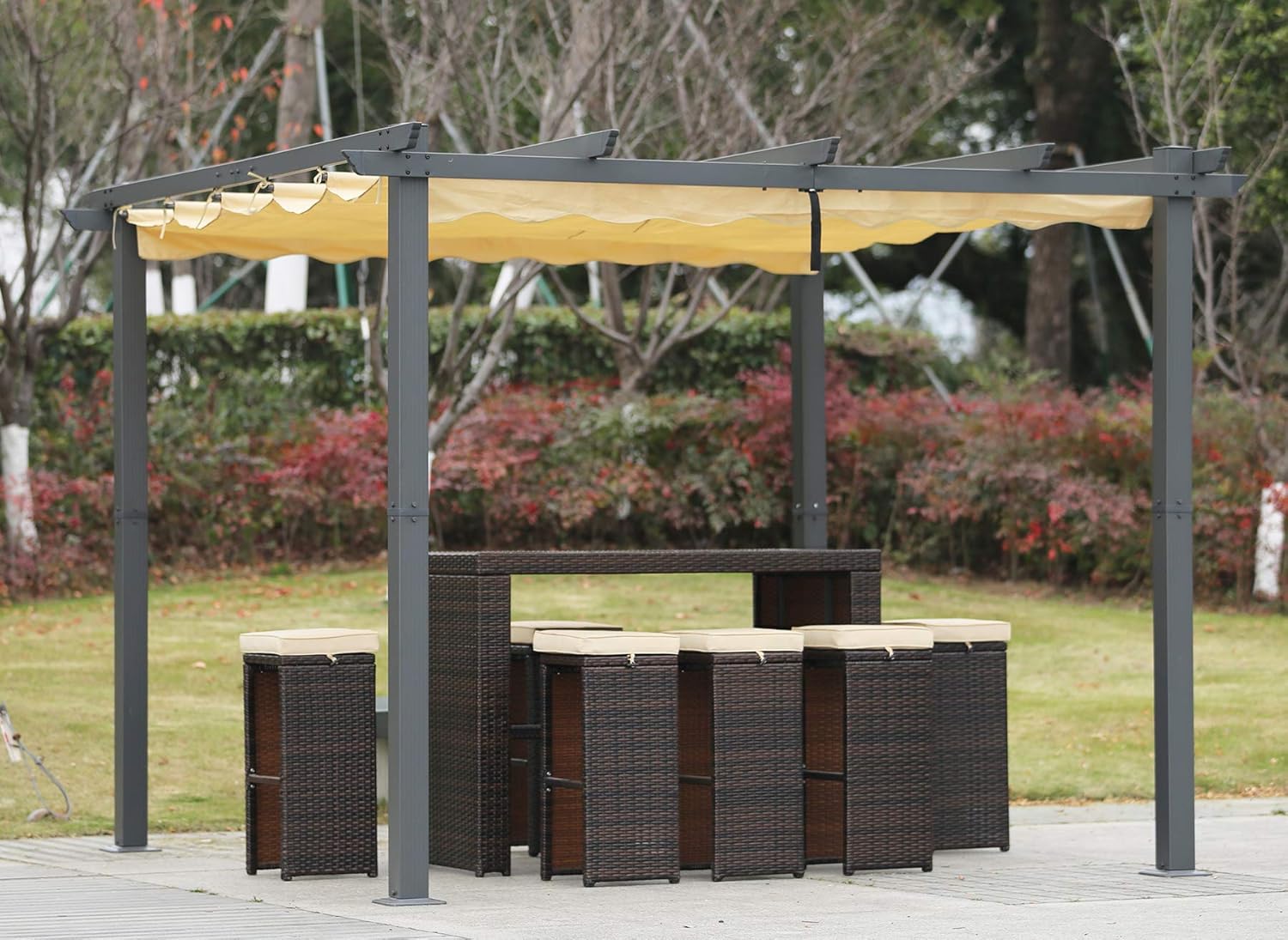 Buy Angel Living Aluminum Garden 3x3m Pergola Gazebo With Retractable Roof Canopy For Outdoor Patio Beige Online In Turkey B085q1nqr4